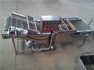 大型蔬菜清洗機(jī)的工作原理有很多客戶都不明白,下面就讓我接受一下,該機(jī)采用氣泡翻滾,沖刷,噴淋技術(shù),物料由人工或者提升機(jī)代替,當(dāng)物料進(jìn)入到清洗機(jī)內(nèi),由鼓風(fēng)機(jī)通過管道輸送讓水槽里面的水達(dá)到翻騰的狀態(tài),模擬手工清洗,對(duì)蔬菜表皮不會(huì)沒有損壞,清洗在清洗的過程中,水槽旁邊有溢水口可將蔬菜上面的雜草、漂浮物流到溢水口,溢水口上端設(shè)有過濾網(wǎng),水槽里面的水可循環(huán)利用,大大的為客戶節(jié)約了水,再由輸送網(wǎng)帶提升到出口,網(wǎng)帶可采用變頻調(diào)速,快慢可調(diào),在出口上端設(shè)有二次噴淋裝置,可給物料進(jìn)行二次清洗,把蔬菜清洗干凈,為下一道工序做好準(zhǔn)備工作。