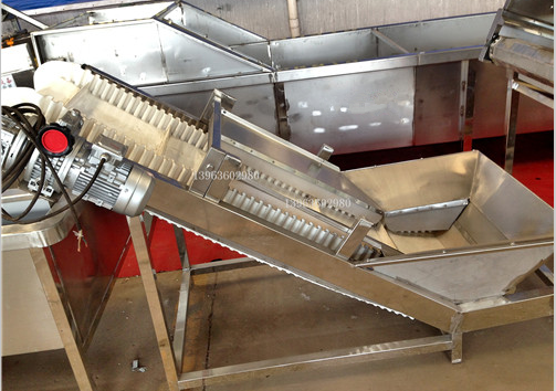 7、提升機:通過振動瀝水將大量的水滴去除掉,由提升機提升到下一道工序。傳送帶為PVC食品級材質,完全符合我國對食品衛生的需求。