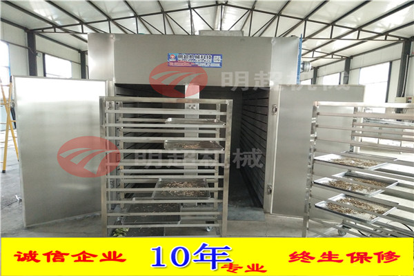 電加熱沙果干烘干機只需要在烘干之前將物料擺放在不銹鋼托盤中,推進烘干房內部,設定好時間溫度跟定時排濕系統,就可以去做別的事情。烘干房會自動升溫,自動控溫,自動排濕,完成后會自動報警。相較于烘干機而言,成本低,烘干效果與烘干機一致。使用更加靈活:烘干機一般來說配置流水線作業,對于產量較少的客戶來說,烘干機就不太適用了,而烘干房更加靈活,占地面積也小,更加方便。開始為了升溫設備運行的功率會大一些,升到設定的溫度之后,設備的功率就會減半,耗能低。開始功率大是為了升溫快,節省烘干時間。