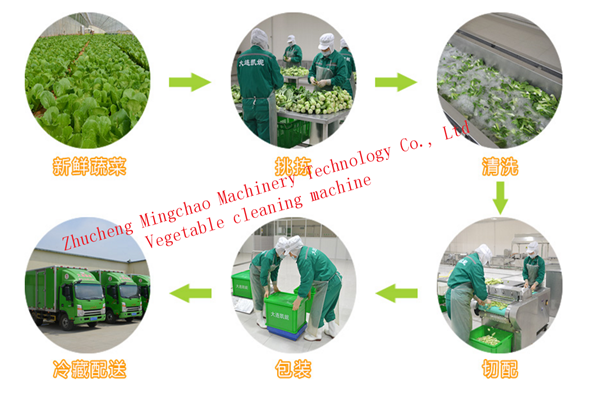 凈菜加工生產線由挑選機→清洗,去農殘,精洗,漂燙,護色,冷卻,瀝水,切菜,包裝,輸送,烘干等組成,可與其它果蔬加工設備配套進行深加工。這種生產線操作方便,產量高,是凈菜加工生產線設備。