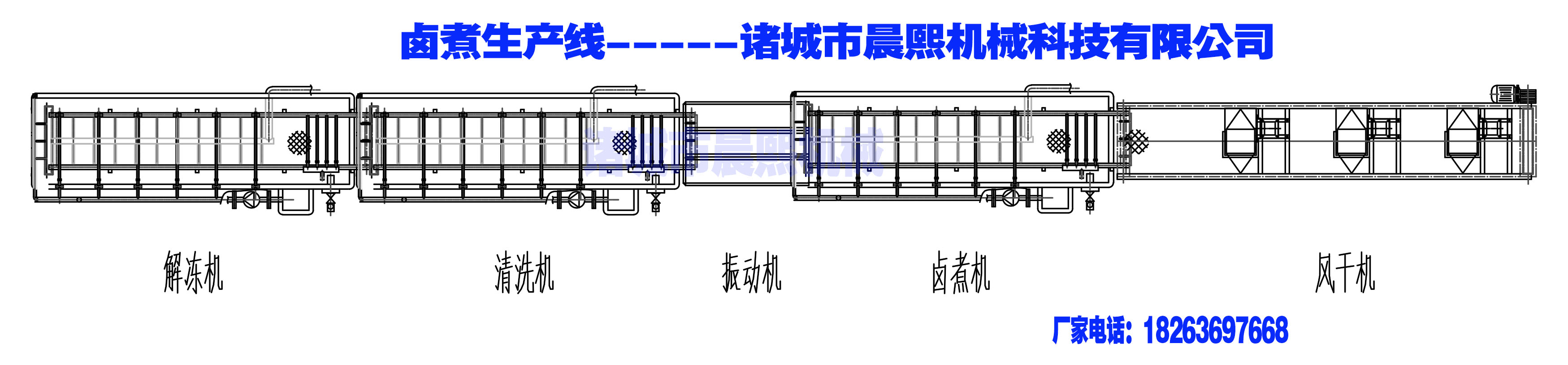 整雞解凍鹵煮生產線 蒸煮鹵制加工流水線工藝流程示意圖示意圖,可根據客戶生產能力確定用多大尺寸的設備,并免費提供技術支持