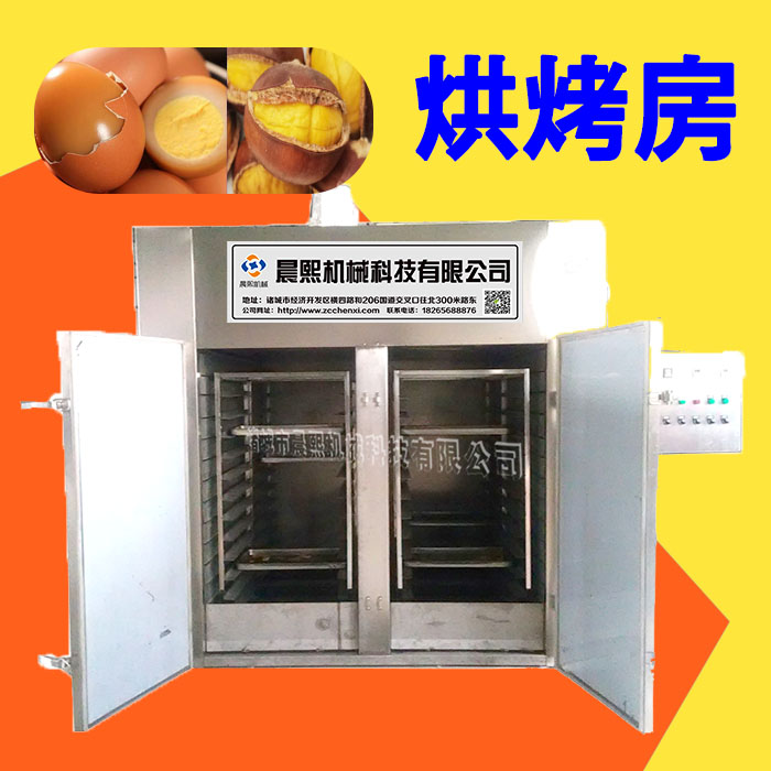 雞蛋烘烤設備是采用電加熱方式,熱氣采用圍繞式將雞蛋里面的濕氣排出,排出的濕氣快速的通過強制排濕風機排出箱體內,雞蛋烘烤過程中不用人工翻料,這樣就省了很多時間,用電量每小時大約3-6度電左右,非常省電,控制箱可選用數字觸摸屏,PLC控制,很多人會問是怎么把熱氣循環與雞蛋周圍呢,這就是我們高溫高濕防爆風機的功能了,把純凈的空氣吸入烘烤設備內,通過分封板將熱氣輸送到雞蛋的周圍,能達到上下左右中間一致,雞蛋烘烤設備里面烘烤的非常均勻,烘烤后設備自動報警,報警后可以打開門把烘車拉出來等待冷卻,再進行包裝,整機采用不銹鋼材質,保溫強度高采用的是硅酸鋁,硅酸鋁優于巖棉的保溫性能,烘烤時間,烘烤溫度,排濕時間都可以隨著工藝不同調試,今天就介紹到這里,還需要了解更多請致電聯系我們。