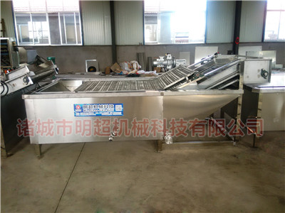 一般來說,根莖類作物凈菜加工流水線包括以下設備挑選輸送帶→提升機→加高去皮毛輥清洗機--氣泡清洗機→消毒殺菌清洗機→高壓噴淋清洗機---多功能蔬菜分切機→漂燙冷卻機→風干瀝水機---傳送帶等設備組成,具體組成設備根據客戶工藝來訂制。