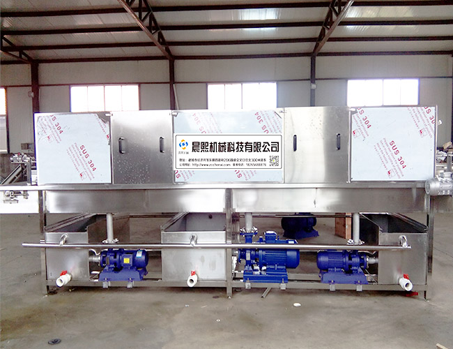 工作流程:入料--除渣--預洗熱水 --熱水清洗-- 殺菌 --烘干